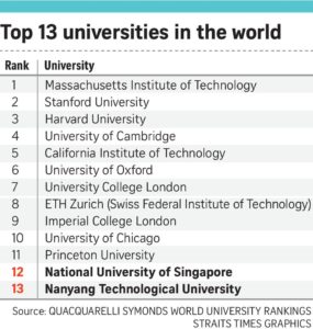 新加坡国立大学和新加坡南洋大学都是全亚洲最顶尖著名的大学,2018国际排名第十一名和第十二名的排行。想去其他国家留学的学生,可以通过新加坡作为国际平台跳板,因为新加坡文凭受国际性承认。新加坡是花园城市,环境优雅,绝对是一个值得推荐出国留学的平台。